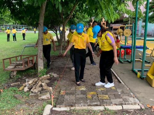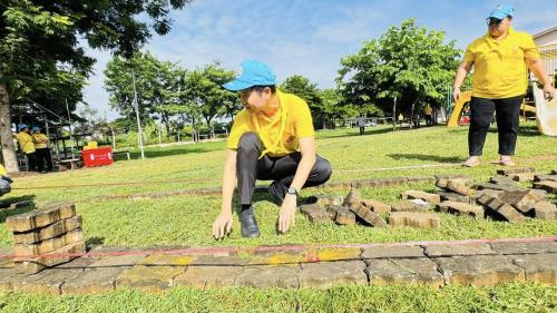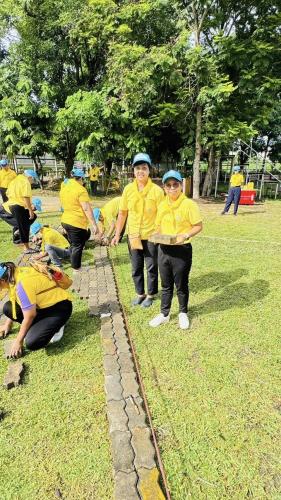 3.การวางอิฐตัวหนอนสร้างทางเดินและปรับปรุงภูมิทัศน์บริเวณสนามเด็กเล่น