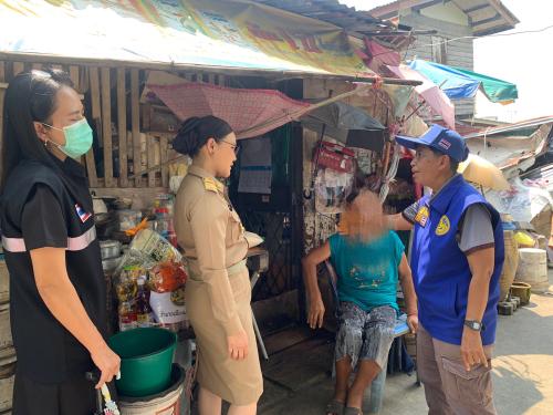 นางสาวญาณิพัชญ์ ศรีโคตร นายอำเภอเมืองนนทบุรี พร้อมด้วย นางสาวสุธีรา ชาตินักรบ กำนันตำบลบางกร่าง นางสาวหนึ่งฤทัย สังข์รุ่ง กำนันตำบลไทรม้า นายเฉลิมศักดิ์ ผมพันธ์ เกษตรอำเภอเมืองนนทบุรี ผู้แทนสาธารณสุขอำเภอเมืองนนทบุรี ผู้ช่วยผู้ใหญ่บ้าน ผรส ชรบ สารวัตรกำนัน ผู้นำชุมชนและเจ้าหน้าที่พัฒนาชุมชน ลงพื้นที่ตรวจเยี่ยมครัวเรือนตกเกณฑ์ความจำเป็นพื้นฐาน (จปฐ.) ในพื้นที่ตำบลบางกร่างจำนวน 1 ครัวเรือน และพื้นที่ตำบลไทรม้าจำนวน 6 ครัวเรือน ทั้งนี้ได้มอบถุงอุปโภคบริโภค ให้กับครัวเรือนเพื่อสร้างขวัญและกำลังใจ พร้อมทั้งให้การช่วยเหลือและหาแนวทางให้ความช่วยเหลืออย่างเหมาะสมต่อไป